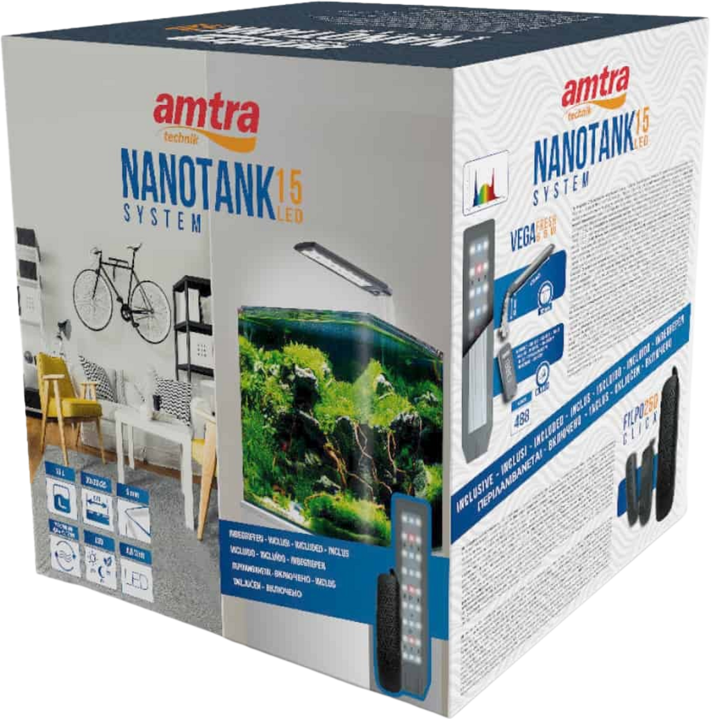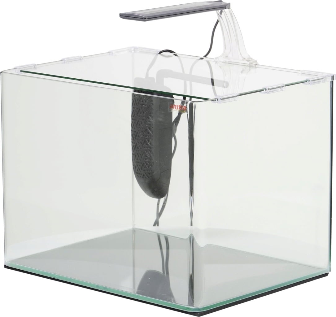 Acquario aperto realizzato in vetro da 5 mm, completo di illuminazione professionale a LED Amtra Vega fresh light e filtro interno Amtra Filpo Click. Il prodotto è ideale per l'aquascaping e come vasca per gamberetti in stile "Caridine".