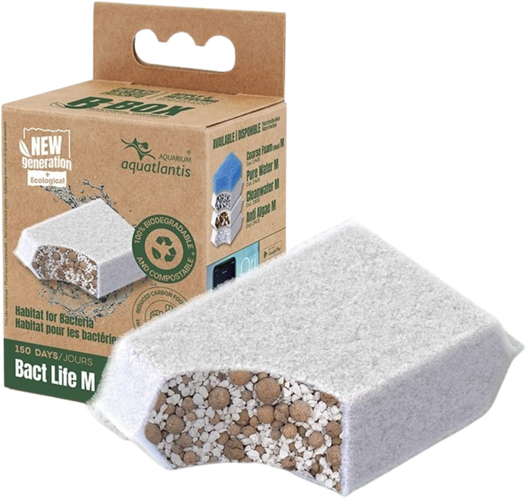 Il mezzo filtrante B-Box Bact Life è facile da sostituire e aiuta a creare un ecosistema ideale per pesci e piante. Consuma ammonio/ammoniaca e nitriti, ma offre un habitat ideale per i batteri nitrificanti.