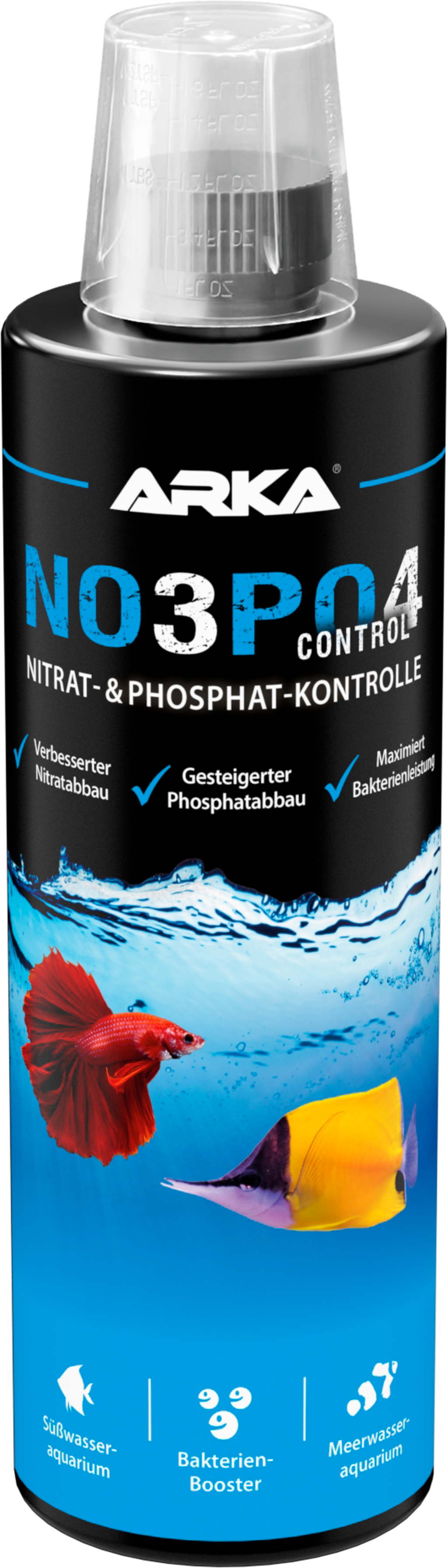 NOPO Control di ARKA è un liquido appositamente sviluppato a base di idrocarburi selezionati, che garantiscono la biodegradazione sicura e ottimale di nitrati (NO3) e fosfati (PO4) in ogni acquario d'acqua dolce e salata. NOPO Control massimizza le prestazioni dei batteri presenti nell'acquario, consentendo un'efficiente scomposizione di nitrati e di fosfati anche con alti livelli di nutrienti e migliorando la biologia dell'acquario.