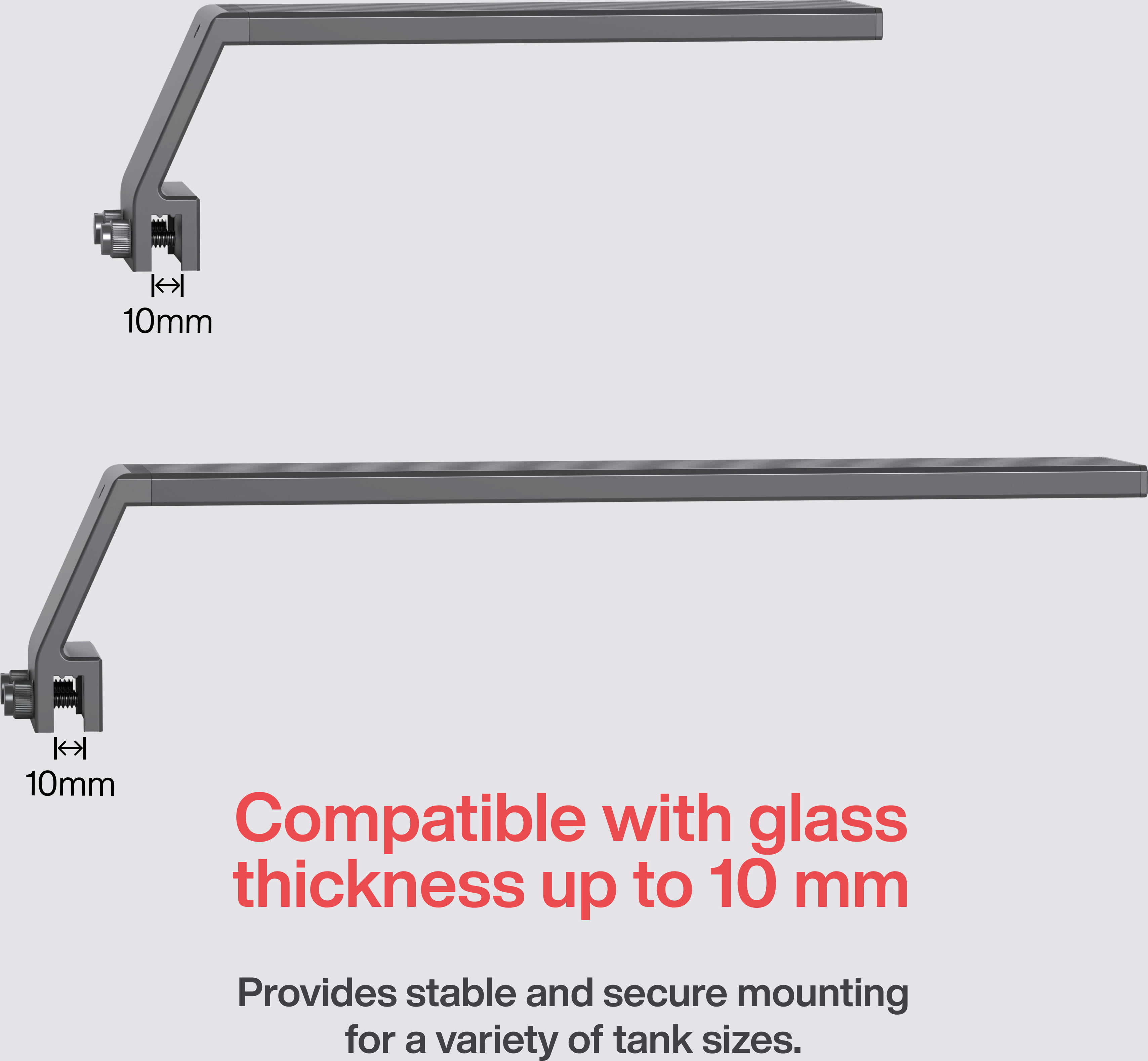 Questa lampada moderna e compatta è stata sviluppata per nano acquari e vasche di piccole dimensioni, dove si integra in modo discreto ed elegante. La versione da 13 watt con 850 lumen e quella più potente da 18 watt con 1200 lumen forniscono entrambe una luce RGB a spettro completo, che esalta i colori di pesci e caridine e garantisce un apporto luminoso ottimale per la crescita delle piante acquatiche.