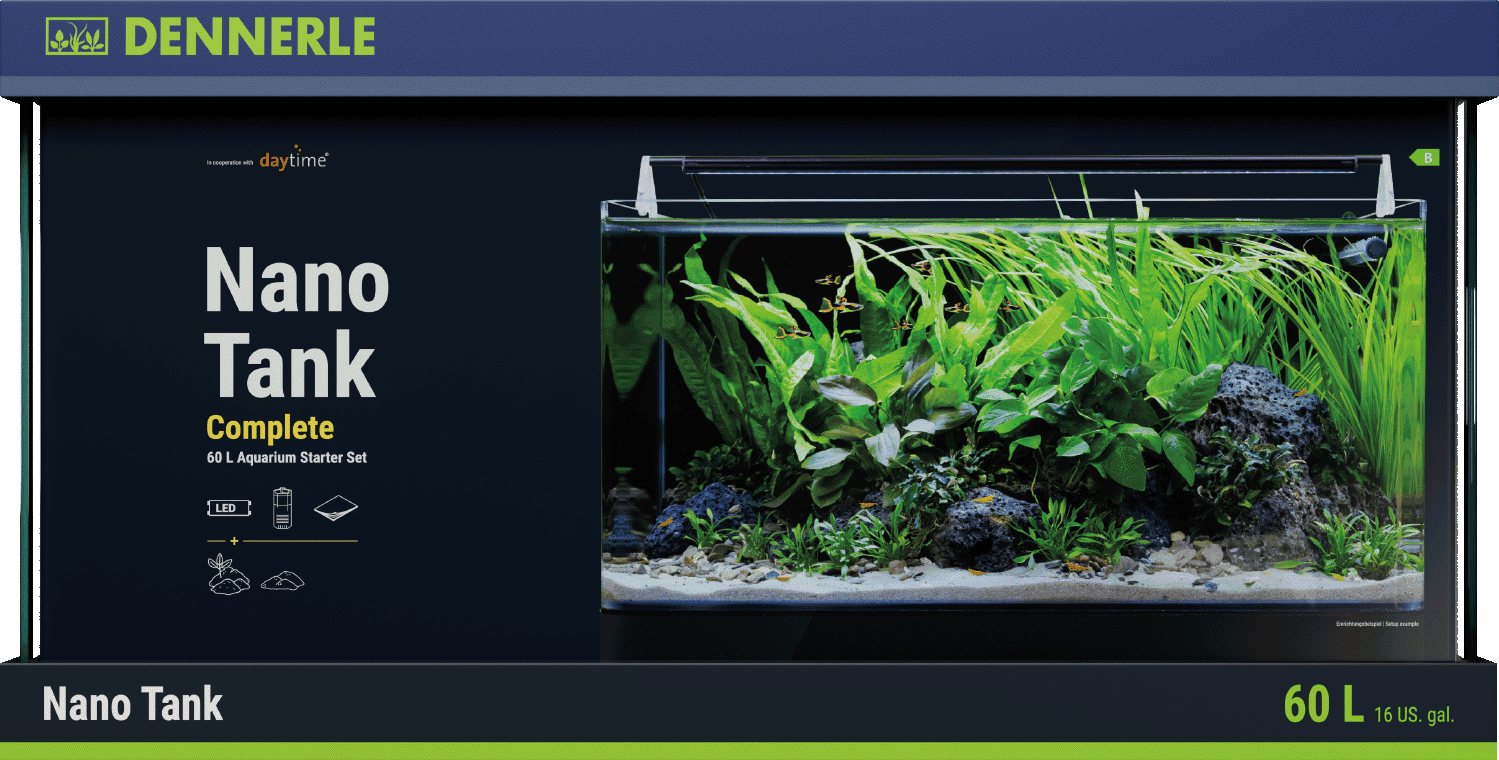 Con il Nano Tank Complete di Dennerle porti nel tuo soggiorno un vero elemento di design che, grazie alla sua forma rettangolare e agli eleganti angoli panoramici arrotondati, crea un'affascinante profondità visiva.