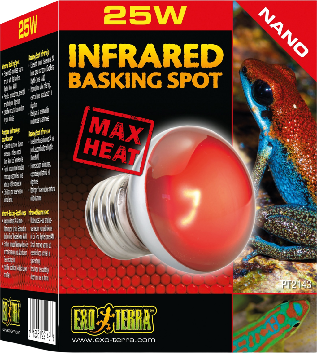 Questa lampadina di Exo Terra fornisce ai terrari NANO e MINI radiazioni di calore a infrarossi. Con l'aiuto di un riflettore integrato, è possibile creare un punto di calore specifico: per fare ciò, la lampadina deve essere orientata nella direzione desiderata. In combinazione con Daylight Basking Spot o Daylight LED Spot NANO offre risultati eccezionali.