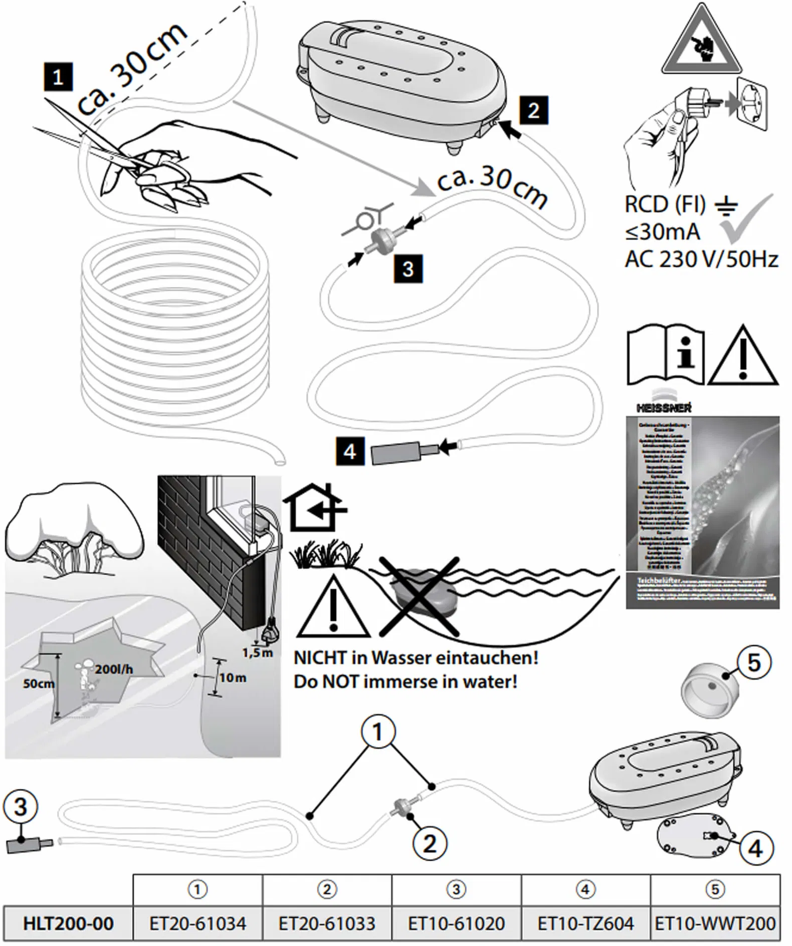 HEISSNER Aeratore per Laghetto - Smartline HLT200-00, 200 l/h - Indoor