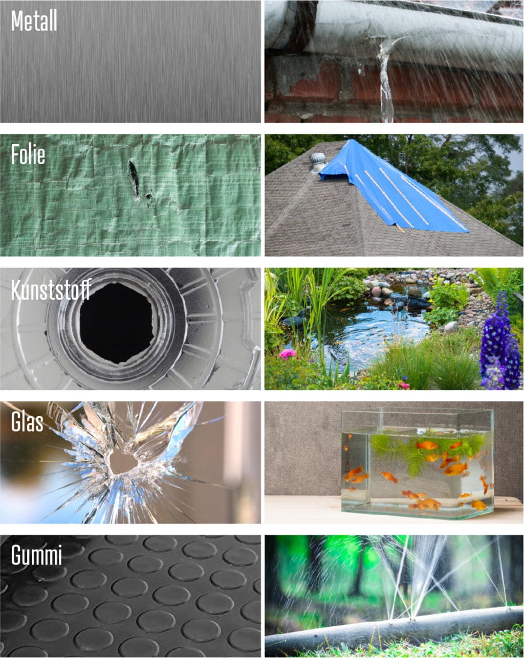 Il nastro adesivo ad alte prestazioni HEISSNER consente una sigillatura immediata e duratura di perdite su diverse superfici come teli per laghetto, piscine, vetro o tubi in PVC. La sua caratteristica distintiva è l'elevatissima forza adesiva, che garantisce un fissaggio affidabile sia a secco sia direttamente sott'acqua su quasi tutti i materiali. Grazie alla struttura flessibile, il nastro impermeabile può essere tagliato su misura e applicato semplicemente premendolo sulla superficie pulita, senza tempi di asciugatura. Questa applicazione semplice e veloce lo rende un aiuto indispensabile per riparazioni rapide in giardino e in ambito domestico.
