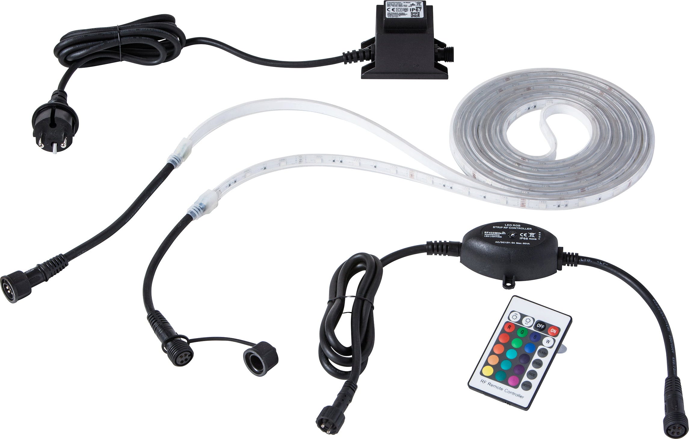La striscia LED RGB subacquea HEISSNER consente un'illuminazione permanente e impermeabile di laghetti, piscine o aree verdi. Tramite il pratico telecomando è possibile controllare facilmente l'ampia gamma di colori per creare atmosfere luminose personalizzate sia in ambienti interni sia esterni. Il trasformatore per esterni incluso nel set garantisce un'alimentazione elettrica sicura in qualsiasi condizione atmosferica. Grazie alla struttura flessibile, è possibile valorizzare con precisione ed efficacia sia le zone sommerse sia gli elementi architettonici del giardino.