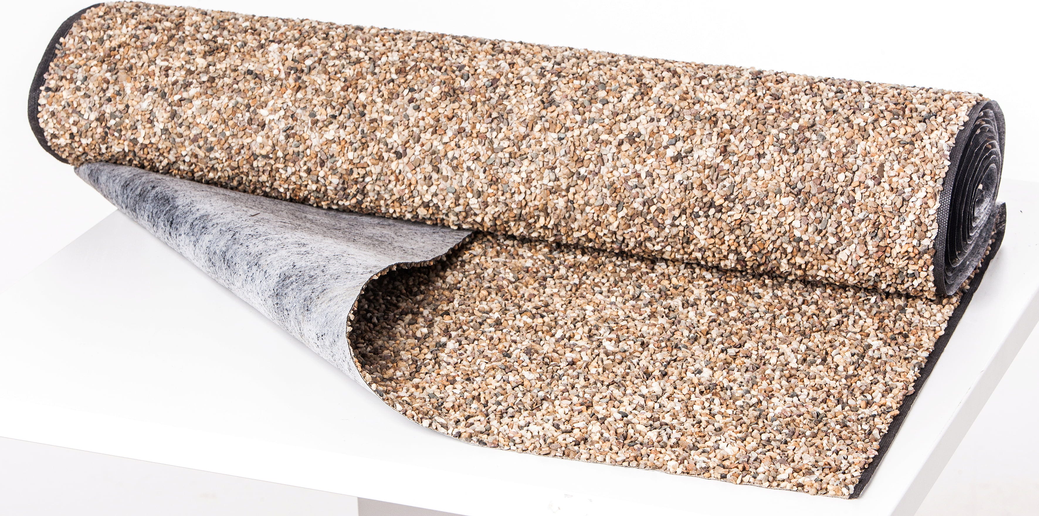 Questo telo per laghetto color arenaria con rivestimento in pietra di HEISSNER consente, grazie alla sua superficie dall'aspetto naturale, un'integrazione visivamente armoniosa di ruscelli e bordi del laghetto nel paesaggio del giardino. Grazie a un innovativo processo di produzione, i ciottoli sono sigillati in modo permanente nel materiale di supporto, mentre il lato inferiore in tessuto non tessuto nero garantisce un collegamento ottimale con la necessaria guaina impermeabile sottostante. Il materiale si distingue per l'estrema resistenza e la stabilità ai raggi UV e offre inoltre un ambiente sicuro per pesci e piante acquatiche.