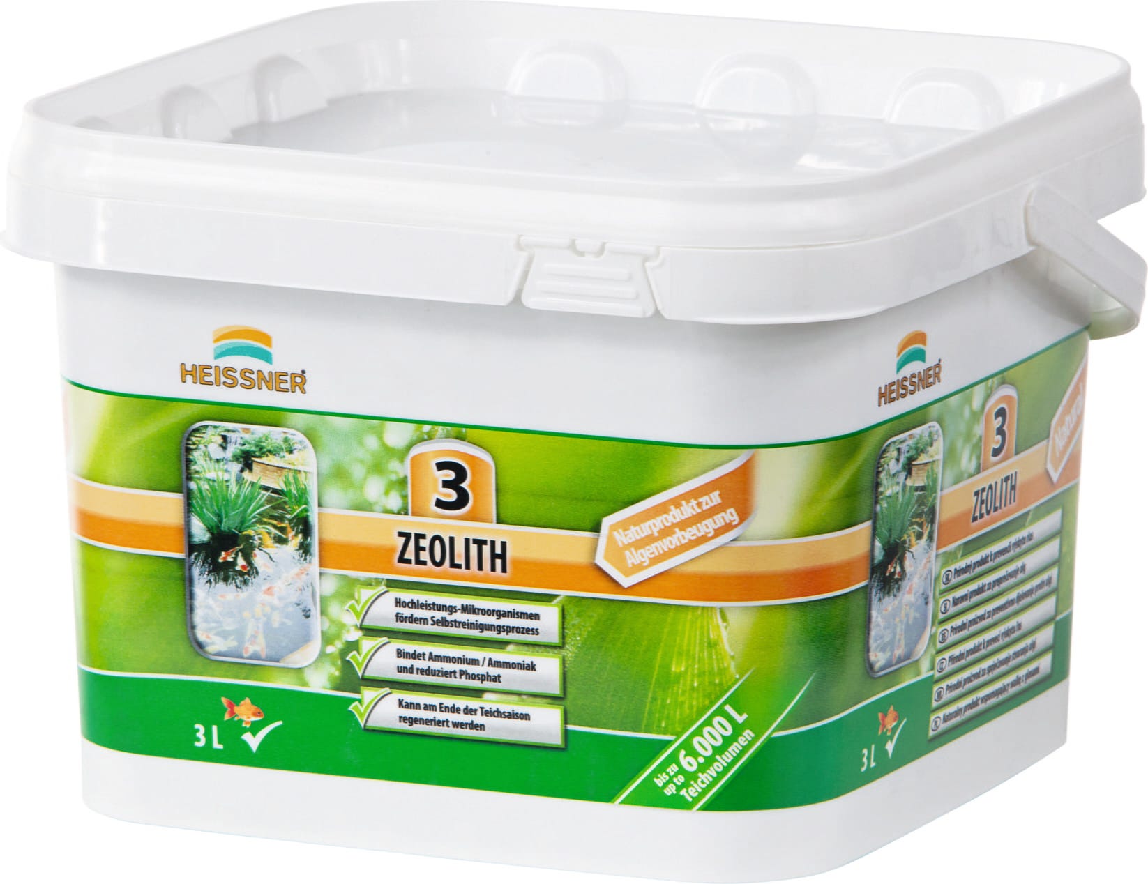 HEISSNER Zeolite è un materiale filtrante altamente efficace che, come prodotto minerale naturale, rimuove dall'acqua del laghetto ammonio e ammoniaca tramite scambio ionico, riducendo allo stesso tempo il contenuto di fosfati. La struttura a pori aperti offre superfici ideali per l'insediamento di microrganismi specializzati, rafforzando così la capacità naturale di autopulizia dell'ecosistema e prevenendo la crescita delle alghe.