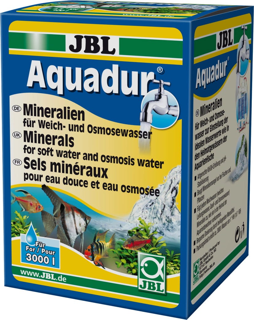 Con JBL Aquadur si può regolare ogni acqua morbida alla durezza desiderata, secondo le esigenze dei pesci da curare, regolando la miscela di polvere. JBL Aquadur è adatta ad acque di osmosi inversa, a quelle provenienti dal rubinetto, addolcite mediante lo scambio ionico ed anche all’acqua piovana. JBL Aquadur permette soprattutto di indurire acque che, in seguito alla presenza di sostanze inquinanti, necessitano una preparazione tramite osmosi inversa o scambio ionico. Inoltre, l’acqua indurita con JBL Aquadur possiede una distribuzione ionica più favorevole per la maggior parte dei pesci tropicali rispetto alla comune acqua del rubinetto.