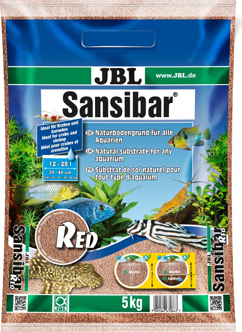 IlSansibar RED di JBL è una sabbia fine rossa con granulometria di 0,2-0,6 mm, adatta per acquari d'acqua dolce e marina, nonché per l'utilizzo in terrario.