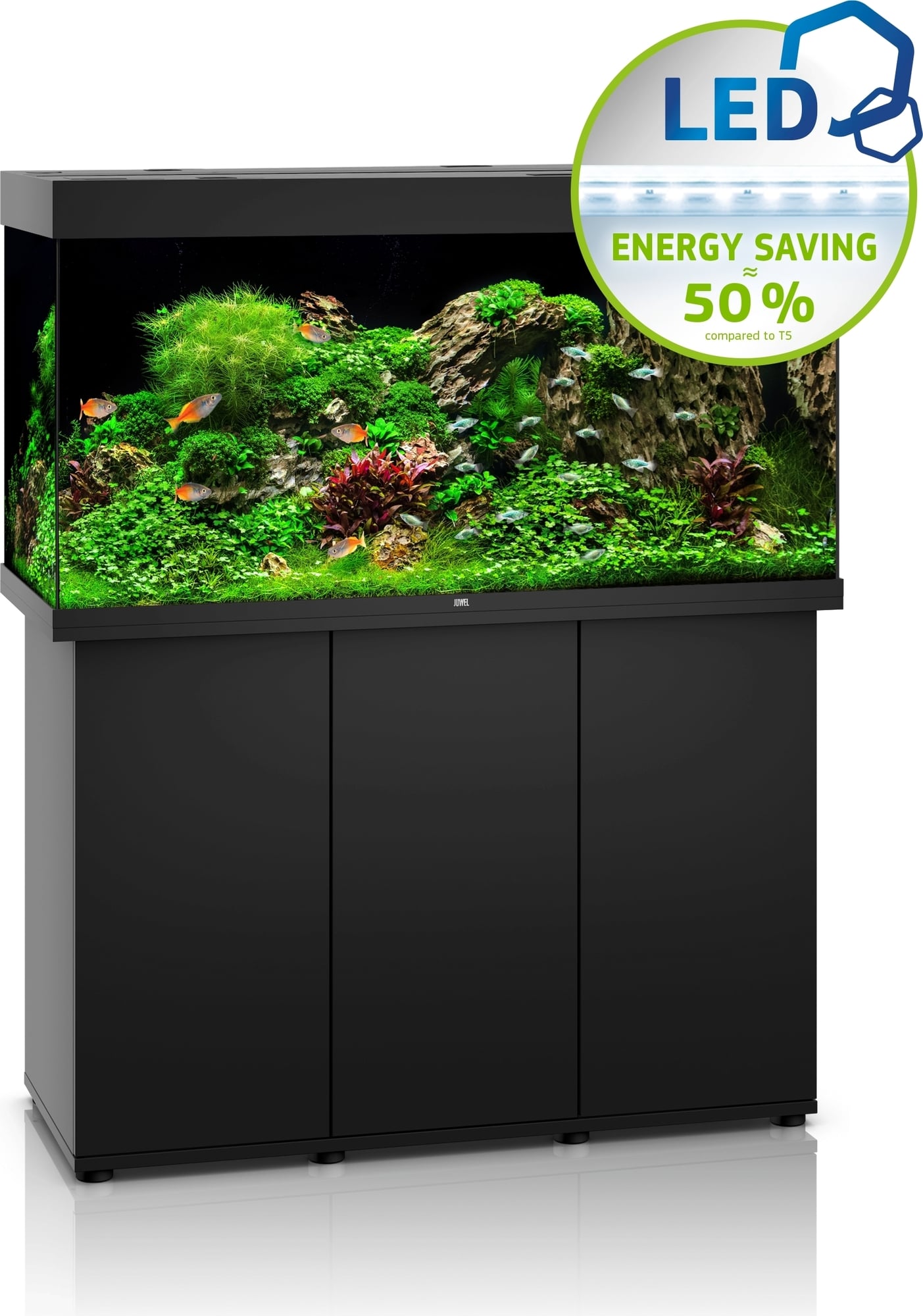 Più profondo, più alto, più luminoso: con una profondità di 50 cm e un'altezza di 66 cm, Rio 350 LED è il pezzo forte della linea Rio. Rio 350 LED è in grado di ospitare sia pesci grandi che creature marine esigenti. Design senza tempo, tecnologia sofisticata e lavorazione accurata rendono ogni acquario Juwel Rio accentua con discrezione il paesaggio sottomarino che hai progettato.