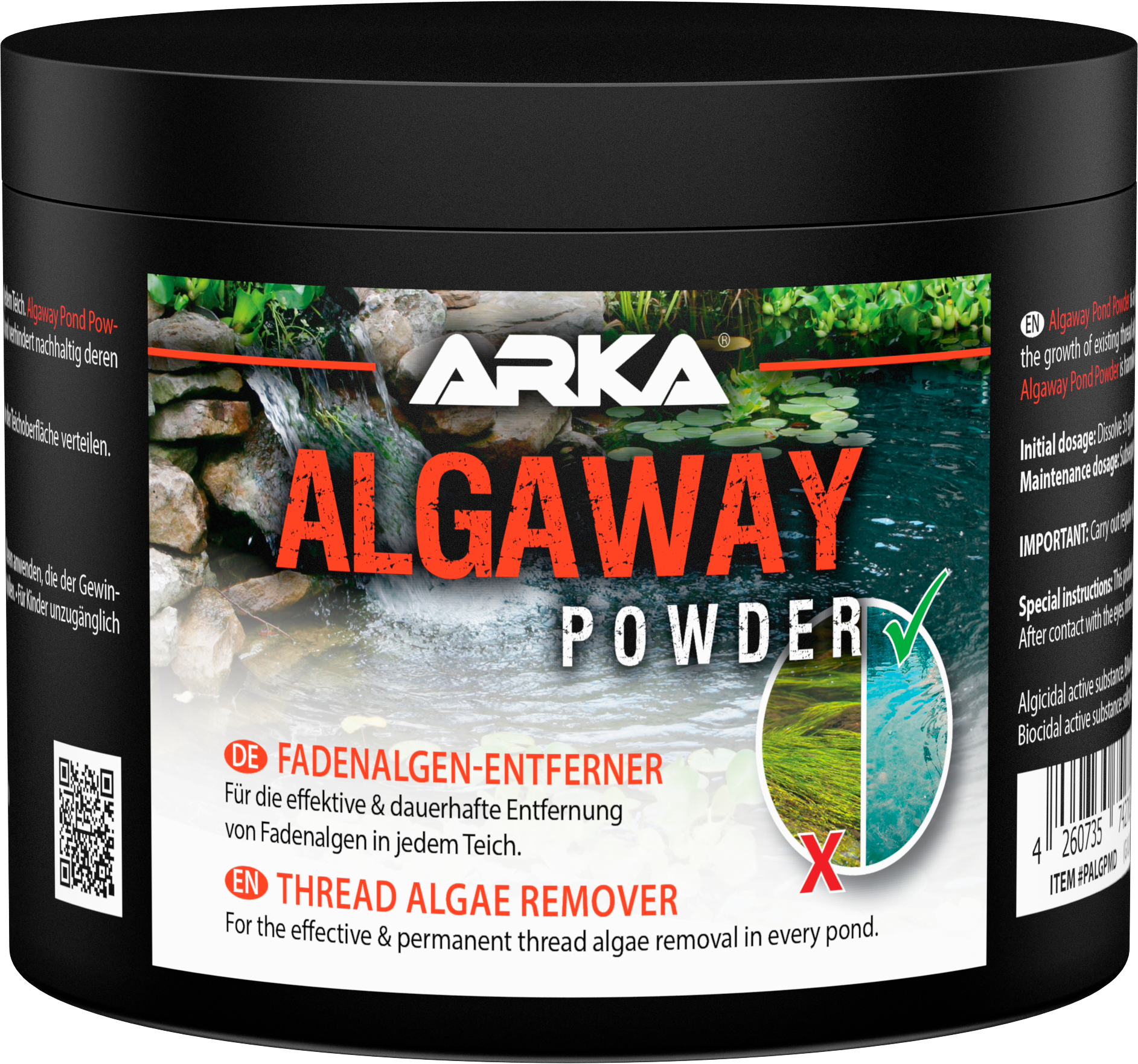 Algaway ha una formula in polvere che è molto facile da usare ed è innocuo per gli animali del laghetto.