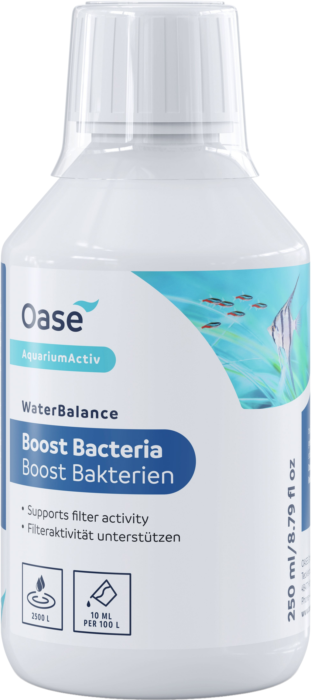 WaterBalance Boost Bacteria di OASE è pensato per acquari d'acqua dolce e contiene miliardi di denitrificatori attivi (batteri) che abbattono le eccessive concentrazioni di nitrati nell'acqua. La decomposizione biologica delle sostanze inquinanti previene la crescita indesiderata di alghe e supporta efficacemente l'ecosistema sensibile. Di conseguenza, sono necessari meno cambi d'acqua.