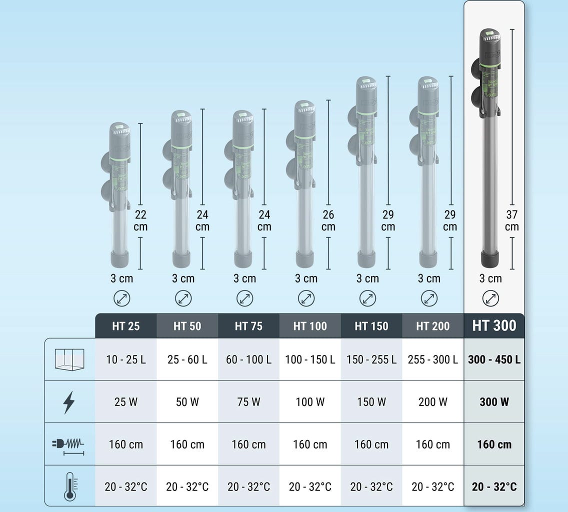 | HT300 | 300 W | 37 cm | 300 - 450 litri |