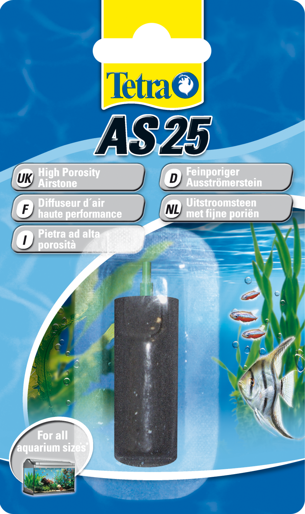 Un aeratore è essenziale per azionare filtri in spugna ad aria o per aumentare il contenuto di ossigeno attraverso un maggiore movimento della superficie. Questa pietra porosa - da utilizzare con l'aeratore per acquari Tetra APS - aumenta l'ossigeno negli acquari. L'accessorio va collegato al tubo flessibile dell'aeratore AH 50-400 e posizionato nell'acquario.