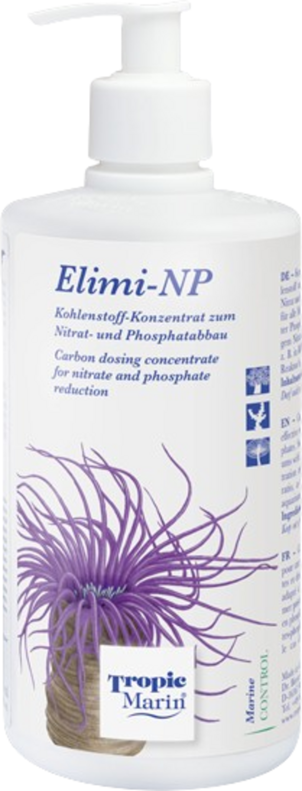 Elimi-NP è un concentrato di carbonio sviluppato appositamente per acquari marini con reattore calcareo corallino. La soluzione liquida contiene carbonio organico che abbassa le concentrazioni di nitrati e di fosfati, correggendo il rapporto nitrato-fosfato nell'acqua. Il prodotto è adatto per acquari con pesci d'acqua salata, coralli molli, LPS, SPS, altri filtratori e crostacei.