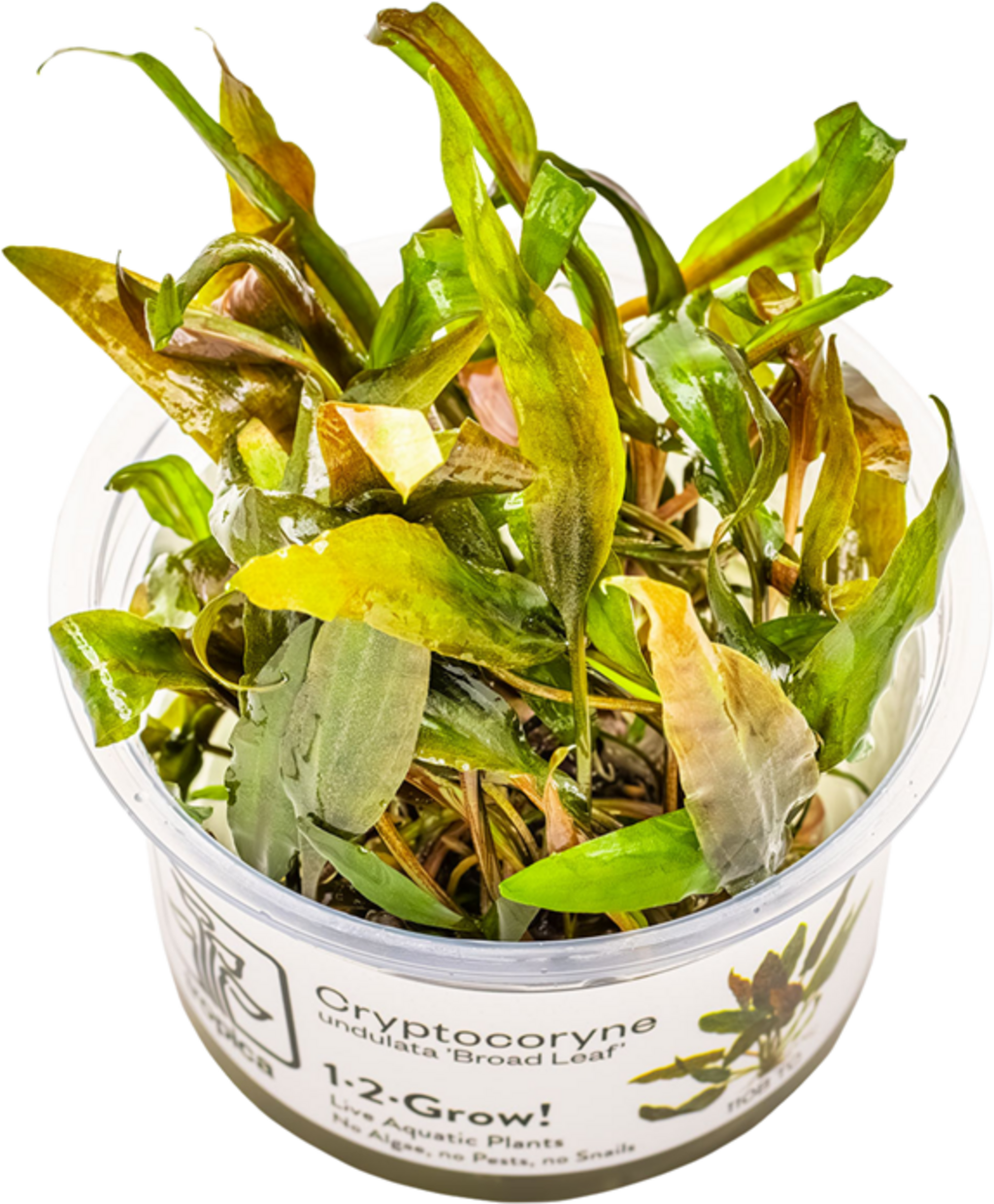 La Cryptocoryne undulata 'Broad Leaf' è una pianta molto adattabile, capace di modificare il proprio aspetto in base alle condizioni di crescita, risultando sempre interessante da osservare. Con illuminazione moderata cresce lentamente verso l’alto e mantiene tonalità verde-brune; se invece riceve molta luce e una buona disponibilità di CO₂, sviluppa una crescita più compatta e folta, con sfumature che virano al rosso-bruno. È una specie dal portamento eretto, ideale per l’allestimento del primo e del medio piano dell’acquario.